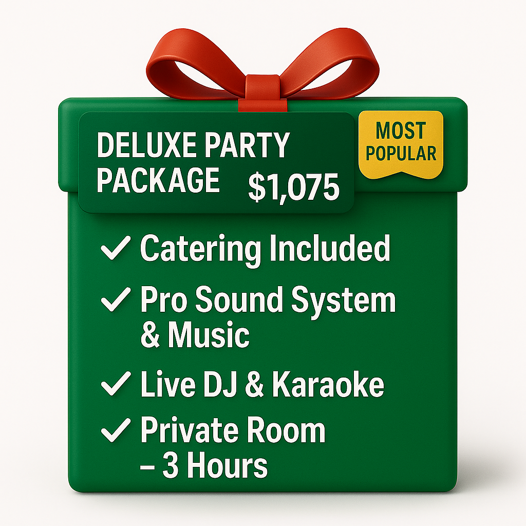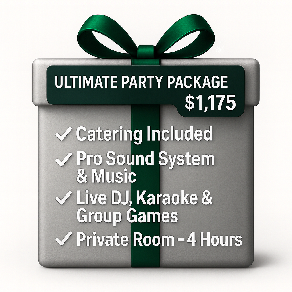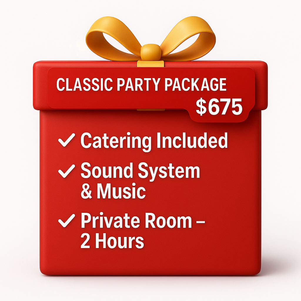 All party packages include catering for up to 24 people, decor, as well as taxes and tip. (+$25 for each additional person)